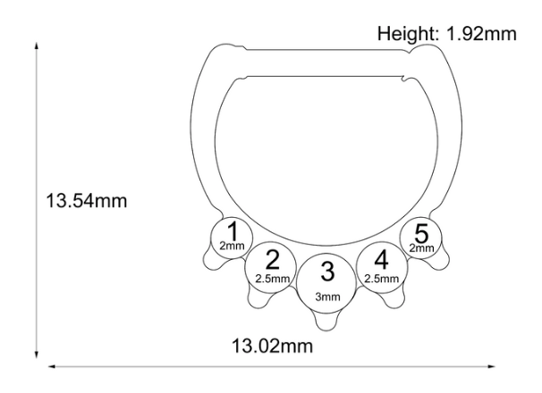 Gem Sizes: 2x 2mm, 2x 1.5mm, 1x 3mm